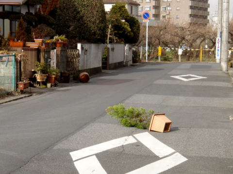 市街地なら風も少しおとなしいだろうと思ったですが、甘かったです。交差点なんかでのいきなりの横風で、1mほど車道の中央にロードレーサーが飛ばされたりして、思いっきり怖い思いをしました。風に吹き飛ばされたゴミが中を舞い、地を走る状態。店の看板は壊れているし、鉢に植えられた植木も道の真ん中まで吹き飛ばされていました。あんな重いものが、どうしたらあそこまで飛ぶのだろ!